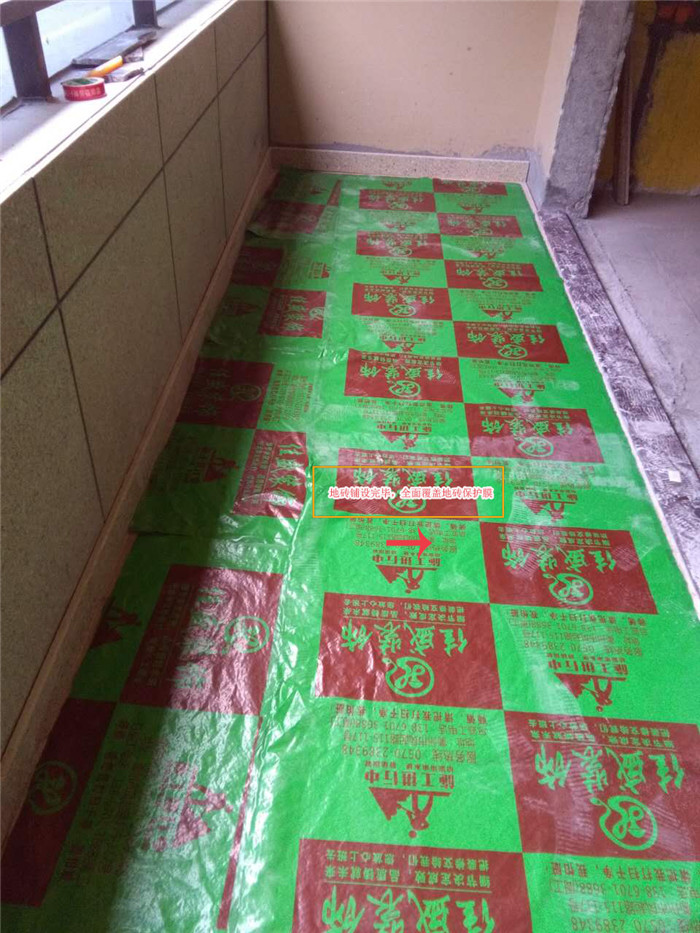 瓷砖铺设好 保护膜全面覆盖以防刮擦