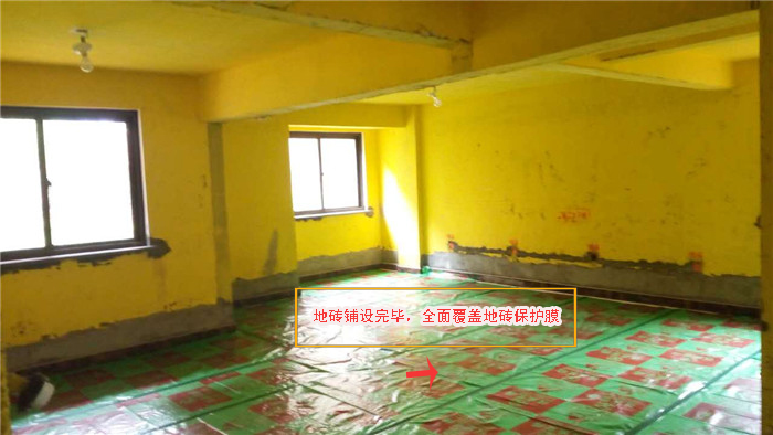 瓷砖铺设好,用保护膜保护好