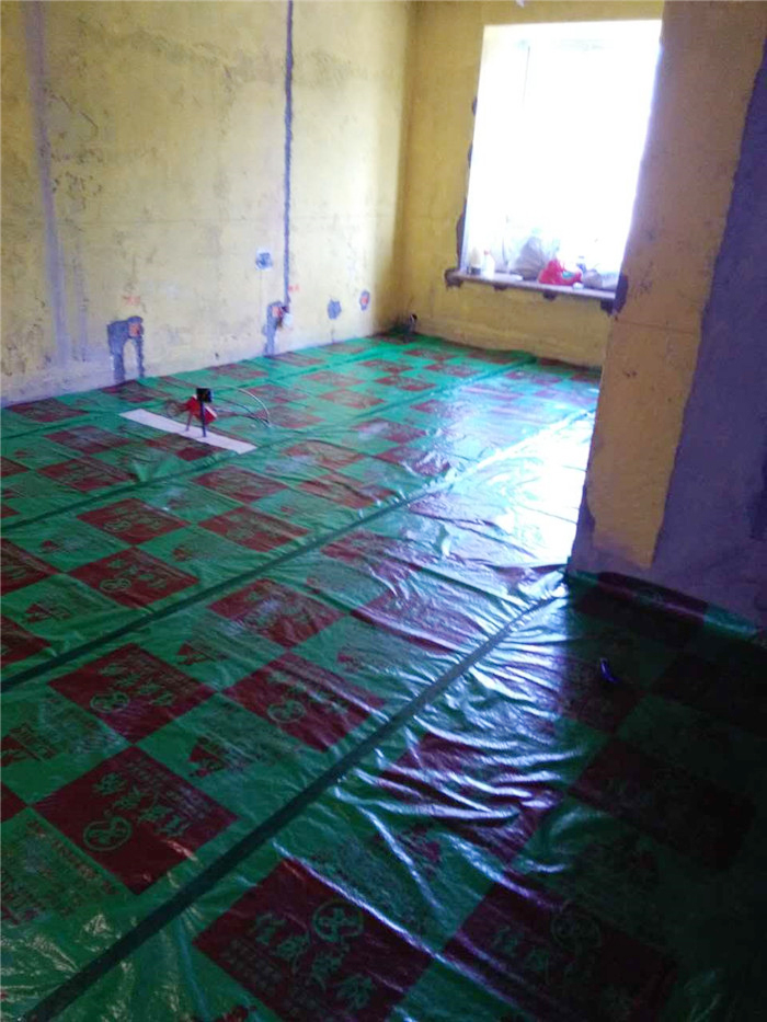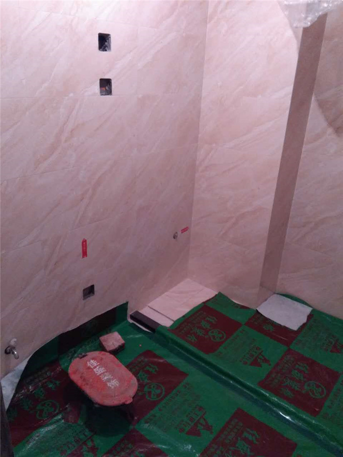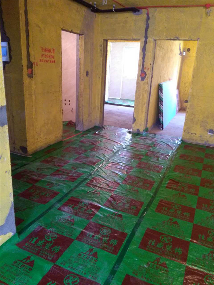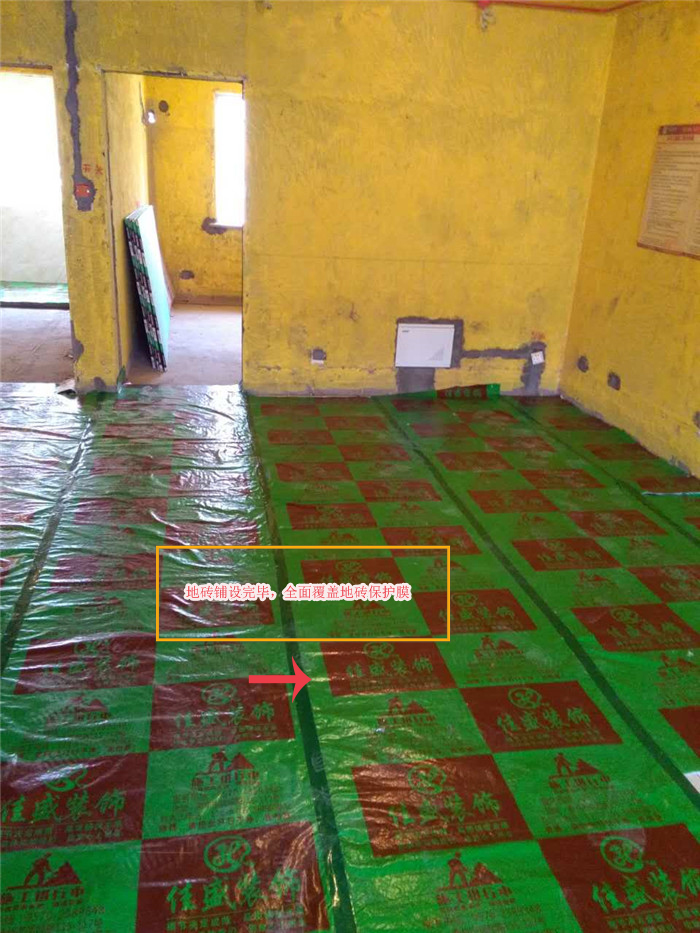 瓷砖铺设完毕,保护膜全面覆盖