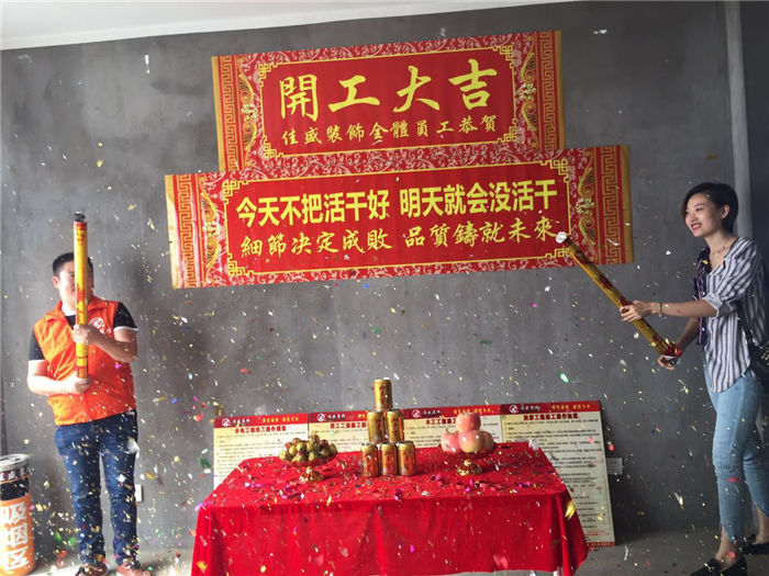 开工大吉业主、项目经理、设计师合影