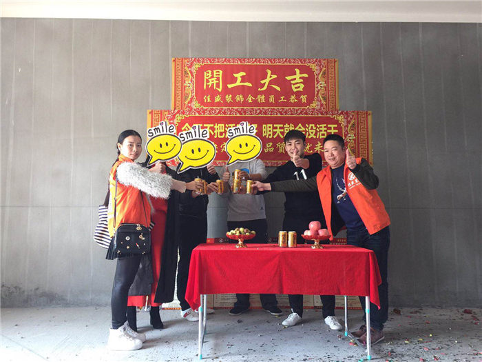 业主、项目经理、设计师开工合影: