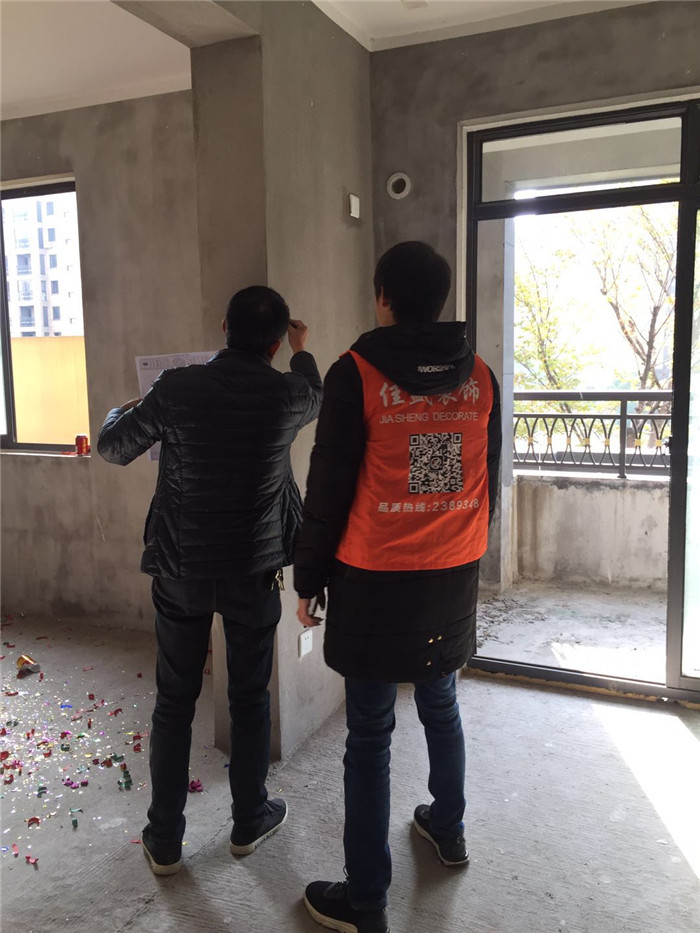 设计师 项目经理现场确定敲墙位置: