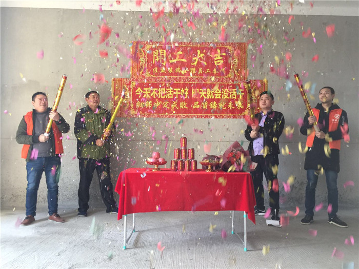 业主、项目经理、设计师开工合影