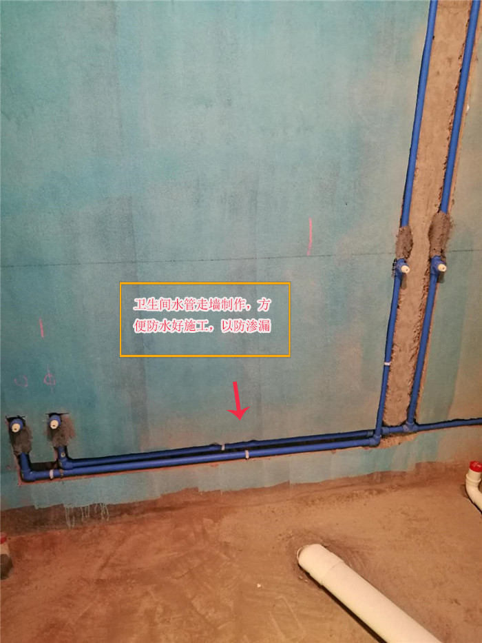 卫生间水管铺设: