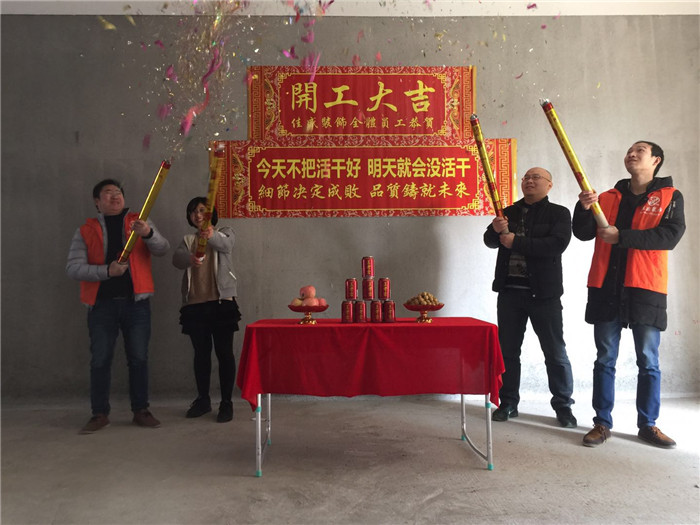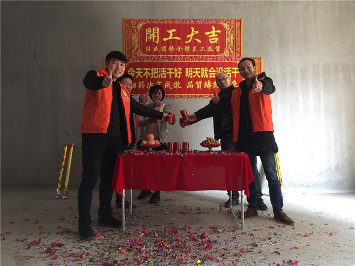 业主、设计师、项目经理开工合影: