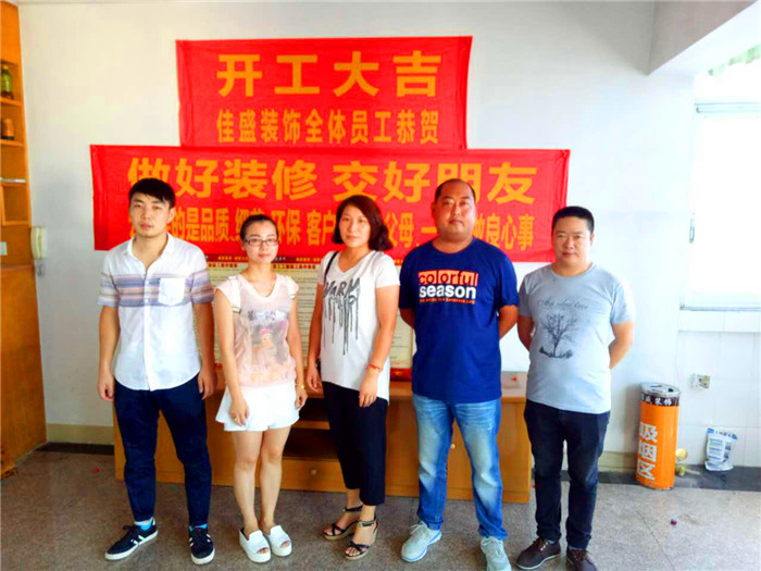 开工照:(项目经理、设计师、业主合影)