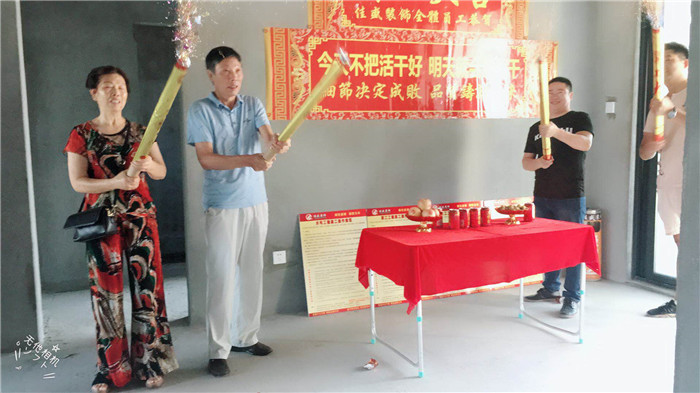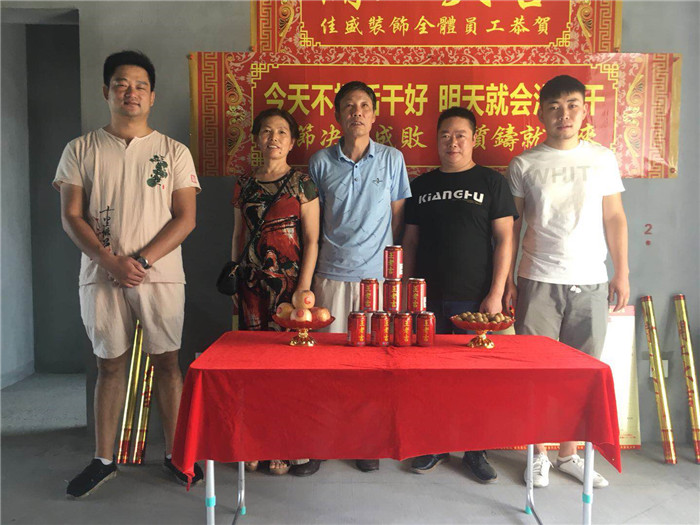业主、设计师、项目经理开工合影: